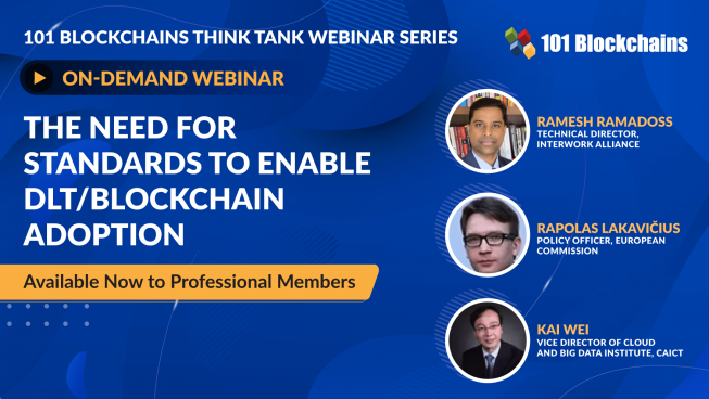 101 Blockchains hosts this webinar on The need for Standards to Enable DLT/Blockchain Adoption, presented by: